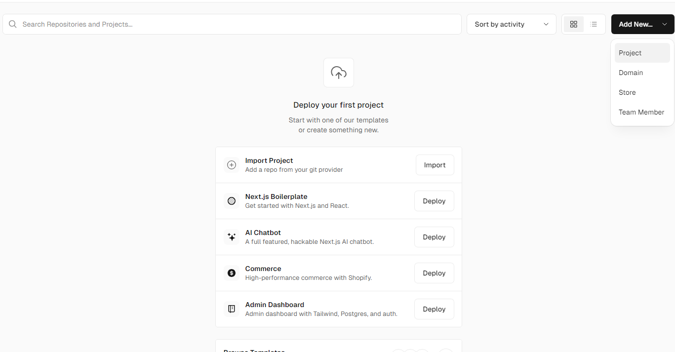 이게 버셀 회원가입 페이지인데, 다른 사이트였으면 구글로 통일하는 것이 편했겠지만, 배포에 가장 많이 쓰이는 사이트인 만큼 GitHub 소셜 로그인이 가장 앞에 배치된 모습이다. 아무래도 배포할 코드가 직접 올라가는 깃허브 계정에 연결하는 것이 가장 편리하여 그것을 권장하고 있다.