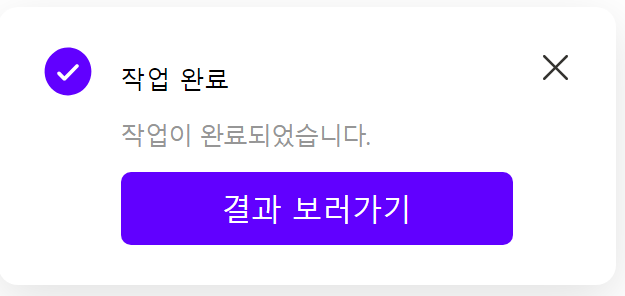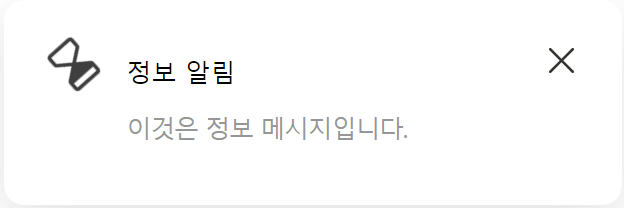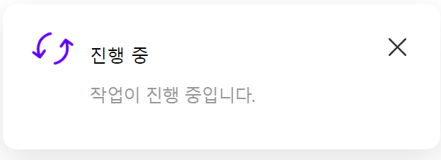 디자인이 중간에 수정되면서 Alert 컴포넌트가 생겼다. 코드를 분석할 때 alert으로 상태를 표시하고 프로그래스 바를 파일 아래로 옮겨 디자인이 간소화되었다. 정보알림이라고 이름이 붙은 alert를 보면 모래시계가 기울여져 있는데, 이 속성은 animate-spin으로 돌아가도록 지정했다. 원래 정보알림은 대기중에 해당하는 alert인데, storybook용으로 만들었기에 저렇게 설정되어 있다.